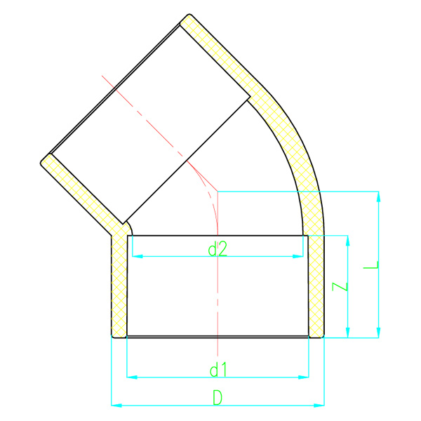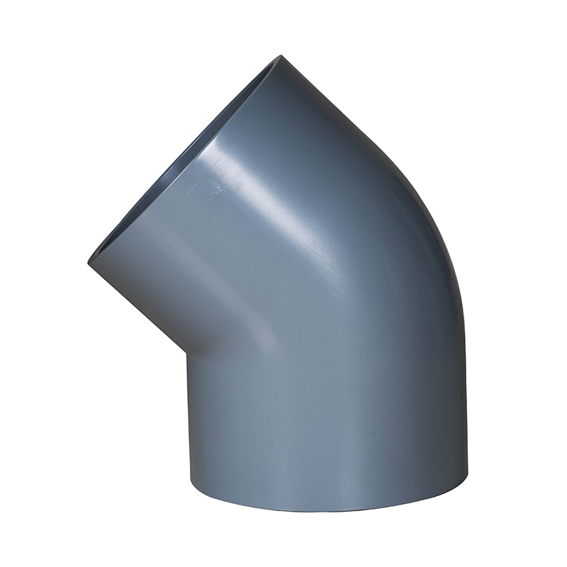 Extra-durabil gri deschis PVC-C 45° în formă de cot, Dimensiune standard profesională DN15-DN600 fitinguri pentru țevi din plastic, PVC-C conform cot 45°