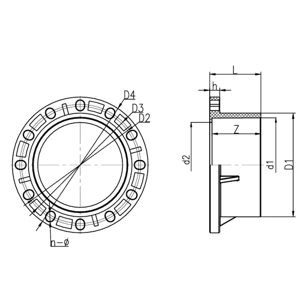 DN D1 D2 D3 D4 d1 d2 L h Z n-Ø generală