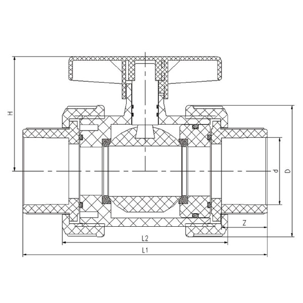 Supapă cu bilă cu priză cu priză cu unire adevărată FRPP, cu dimensiune personalizată, cu dimensiune personalizată, manuală, din plastic durabil, pentru apă industrială