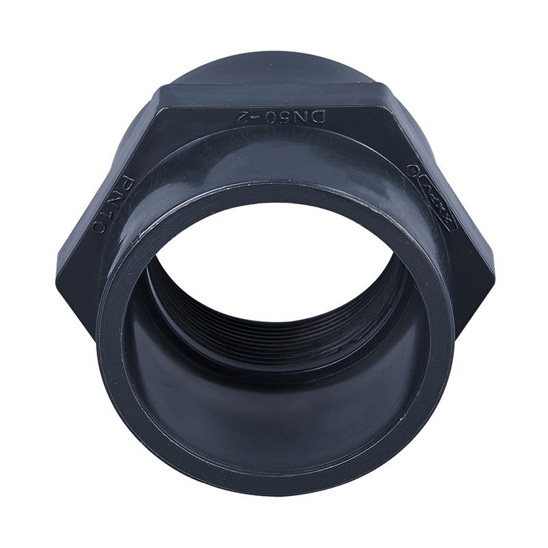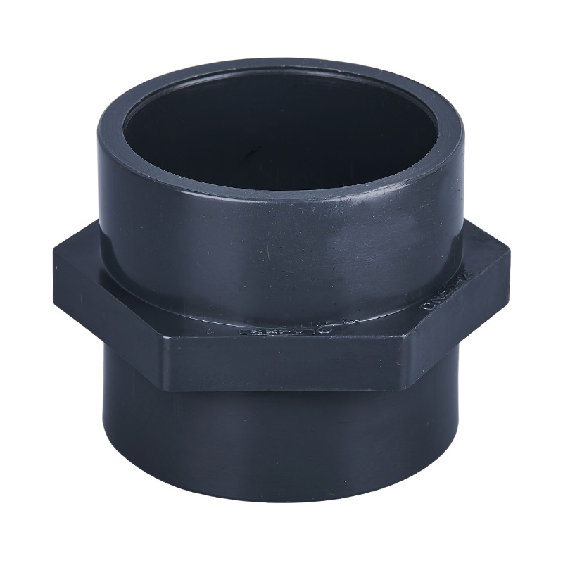Conector cu filet mamă din PVC-U gri închis, DN15-DN50, din plastic ușor, cu fixare rapidă, Conector drept, cu filet femel, Fitinguri de alimentare cu apă industrială