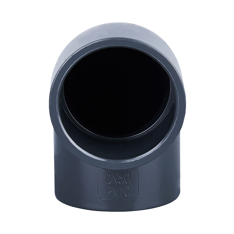Fitinguri de țevi din plastic de înaltă calitate gri închis PVC-U 90° în formă de cot DN15-DN600 1,0-1,6 MPa presiune de lucru pentru industria chimică și a apei.