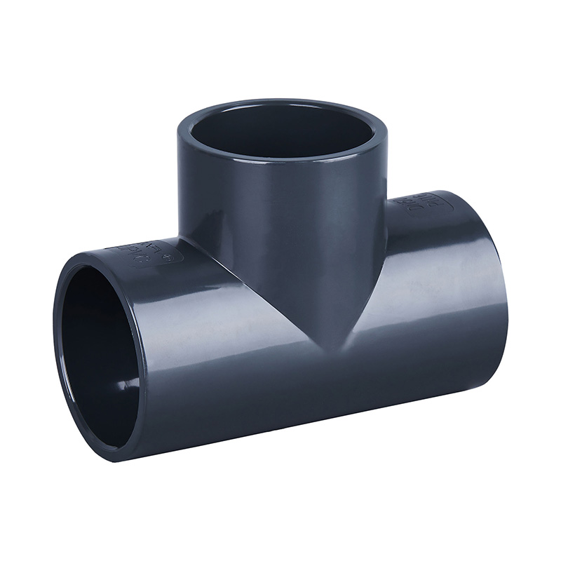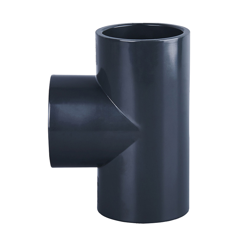 Preț de fabrică Gri închis PVC-U Tee Formă egală Conector țeavă din plastic DN15-DN600 Conector țeavă apă Conector drept Tee pentru drenaj și salubritate